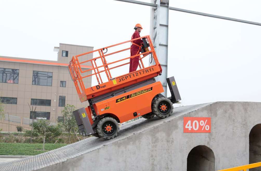 为了满足各种复杂工况的作业需求,提高作业人员的工作效率。浙江鼎力技术团队攻克了一系列技术难题,圆满完成了对全系列越野剪叉式高空作业平台的技术升级并且轻松通过了复杂工况的严格测试。