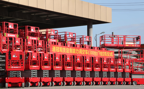 11月10日,通冠租赁定制鼎力高空车(300台)下线交机仪式在浙江鼎力新厂区内举行。浙江鼎力董事长许树根、销售副总陈金晨,上海鼎策融资租赁有限公司总经理朱志军,通冠集团董事长段志军,通冠租赁公司总经理李慧等出席交机仪式,浙江鼎力员工代表参加仪式。