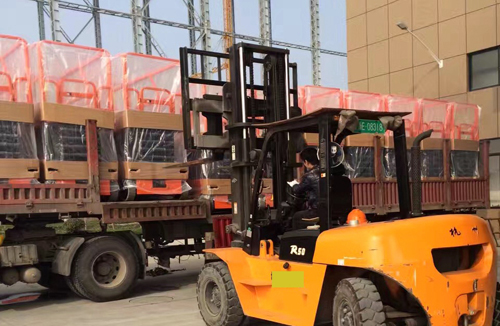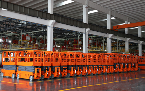 在发货现场,员工们忙碌着将崭新的高空作业平台装上运输车,发往全国及海外各地。