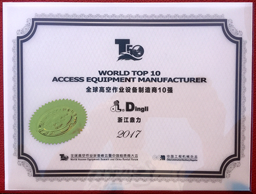 浙江鼎力荣登全球高空作业设备制造商10强