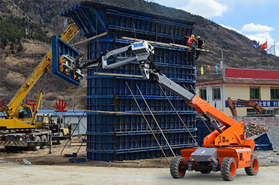 凭借在高空作业平台行业的科研能力,成功研发出一种智能机器人模板举升车。该举升车能够实现对模板的抓取、转运、举升和装卸等工作,适用于多种工程建设领域,可大大减轻劳动强度,提高被覆作业能力。