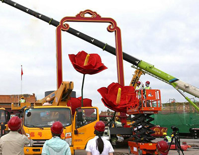 高空作业平台也参与了此次巨型花篮的安装工作。