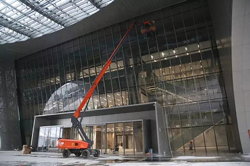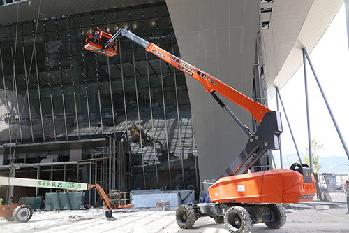 这之前,为赶会场建设和布置工期,浙江鼎力荣幸参与其中,尽其所能将产品倾力奉献,助力了地理信息大会场馆的建设工作,有了鼎力高空作业平台产品的帮助,地信大会建设工作大大加快。