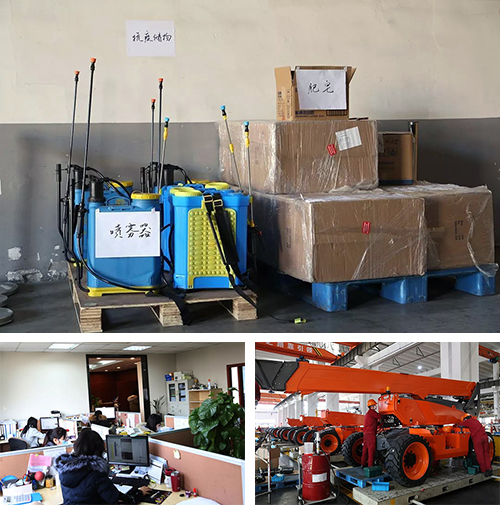 外销部全球采购空运口罩测温枪、财务部提前上班确保正常收付款、设备保障部提前检修生产流水线、采购部员工自告奋勇采购消毒液、售后服务部及技术信息部开展线上培训、电气部加班加点做测试在全司上下多部门的联动下,浙江