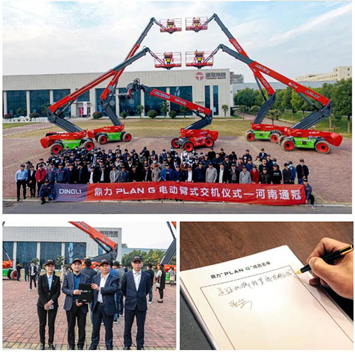 新疆专场乌鲁木齐站电动臂式专场交流洽谈会上,作为此次西域之行的主角,无论是整体性能,还是特定环保优势,电动臂式都得到了客户们的一致好评。新疆高乐神、新疆捷安两家租赁公司代表完成交机。