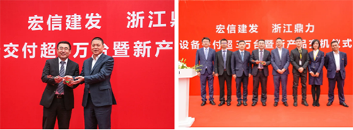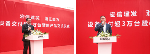 出席活动的领导有宏信建发总经理章春雨,宏信建发总经理助理王一平,宏信建发总经理助理权江辉 糖心视频网站,浙江鼎力董事长许树根先生,常务副总经理许仲先生,销售总监黄燕女士,仪式上,双方领导分别发表致辞。