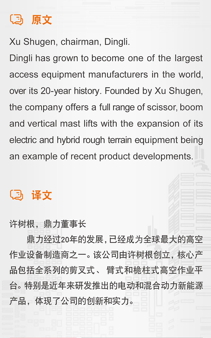 全球高空作业平台制造商3强,以高空作业平台单项荣登全球工程机械制造商第40位。