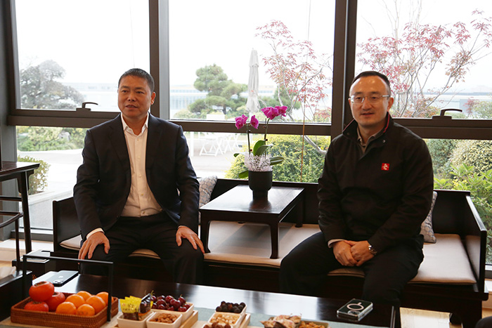 签约仪式前,鼎力董事长许树根与宏信建发总经理潘阳进行了交流座谈 糖心视频高清。