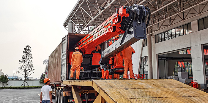 3,小臂变幅角度240°,可回勾,平板车运输可最大化释放多余空间,提升富余货运能力 糖心视频网站,且整机适用于标准集装箱运输。